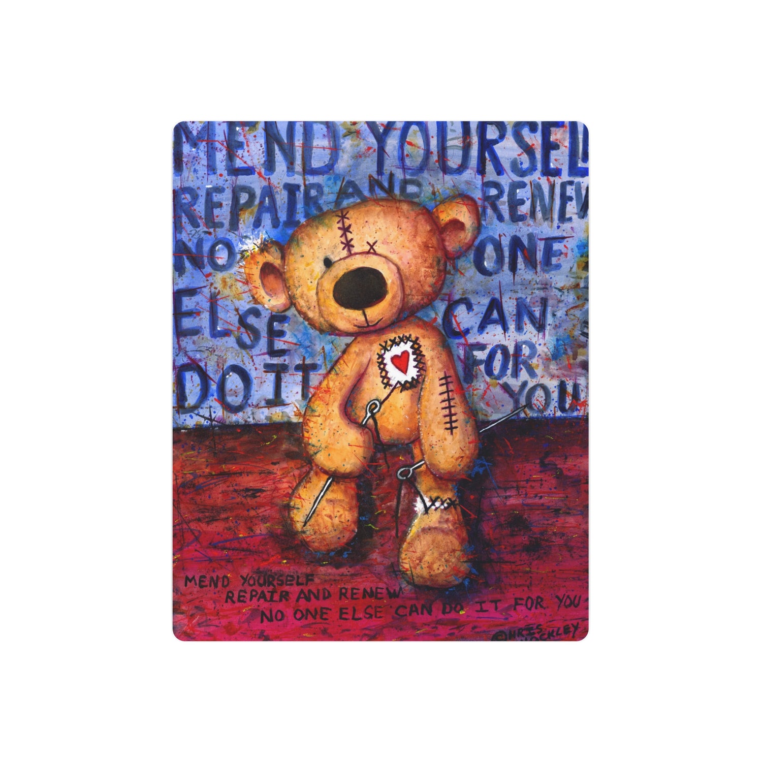 As a watercolor and mixed media artist who also plays the drums, I paint from a perspective that is highly influenced by the rhythmic noise and music within me. Each piece is emotionally layered with an improvised, noisy solo of splatters, strokes, and washes that move in and out of a structured chord progression of feelings and thoughts. This creates a visual sense of movement, rhythm and musicality that connects each subject to, and breathes life into, the environment in which they visually exist. I refer to these paintings as noise weathered tones and musings. These colorful commotions of feelings and thoughts within me, are most often expressed through visual depictions of landscapes, skyscapes, musical performances, tattered stuffed creatures, and abstractions.