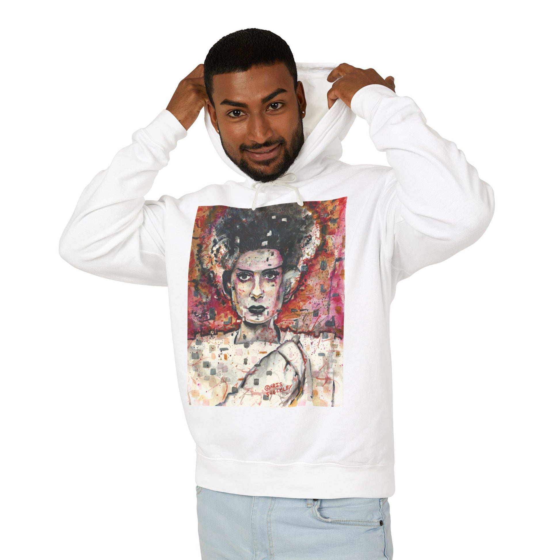 Get spooky with this Glitch Bride (Bride of Frankenstein) hoodie, perfect for Halloween enthusiasts and fans of classic horror movies. Made from 100% ring-spun US cotton, this lightweight hoodie features a jersey-lined hood, rolled forward shoulders, and a relaxed fit for ultimate comfort. Show your support for sustainable cotton farming with this member of the U.S. Cotton Trust Protocol. Ideal for Halloween parties, movie marathons, and everyday casual wear.