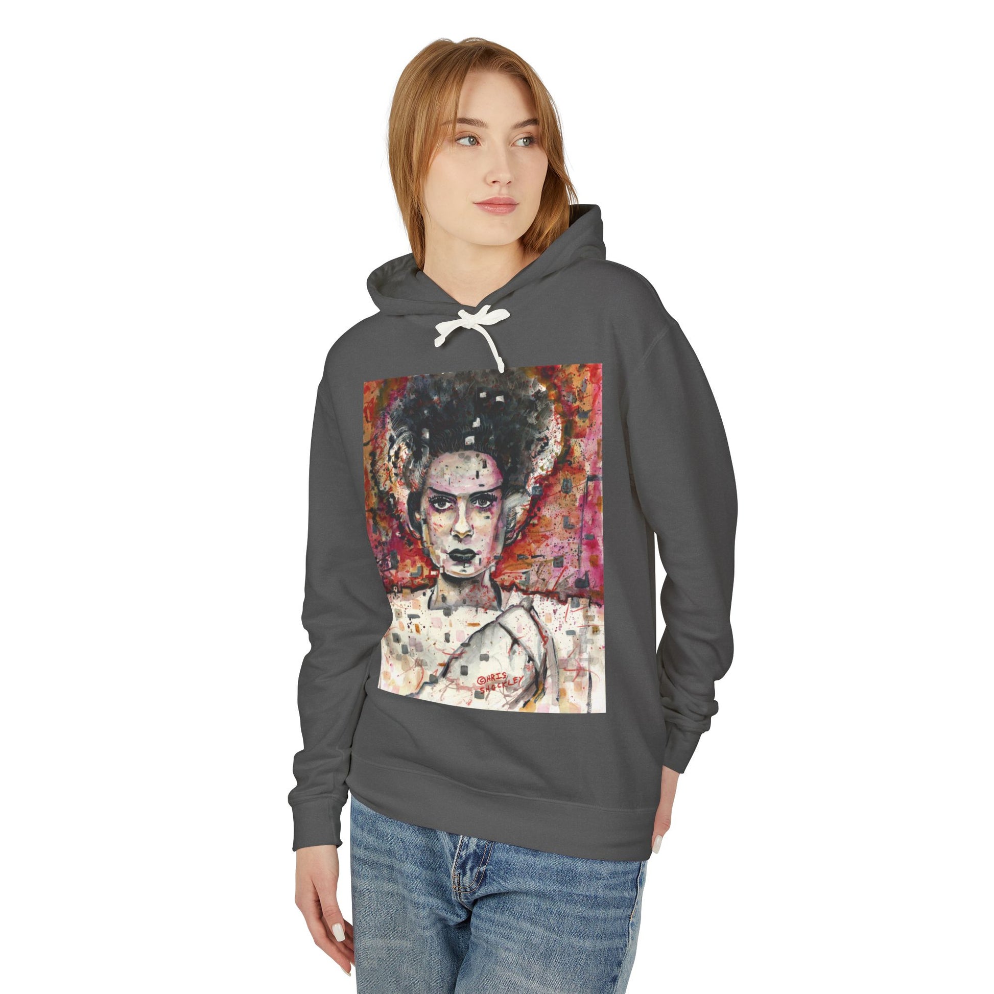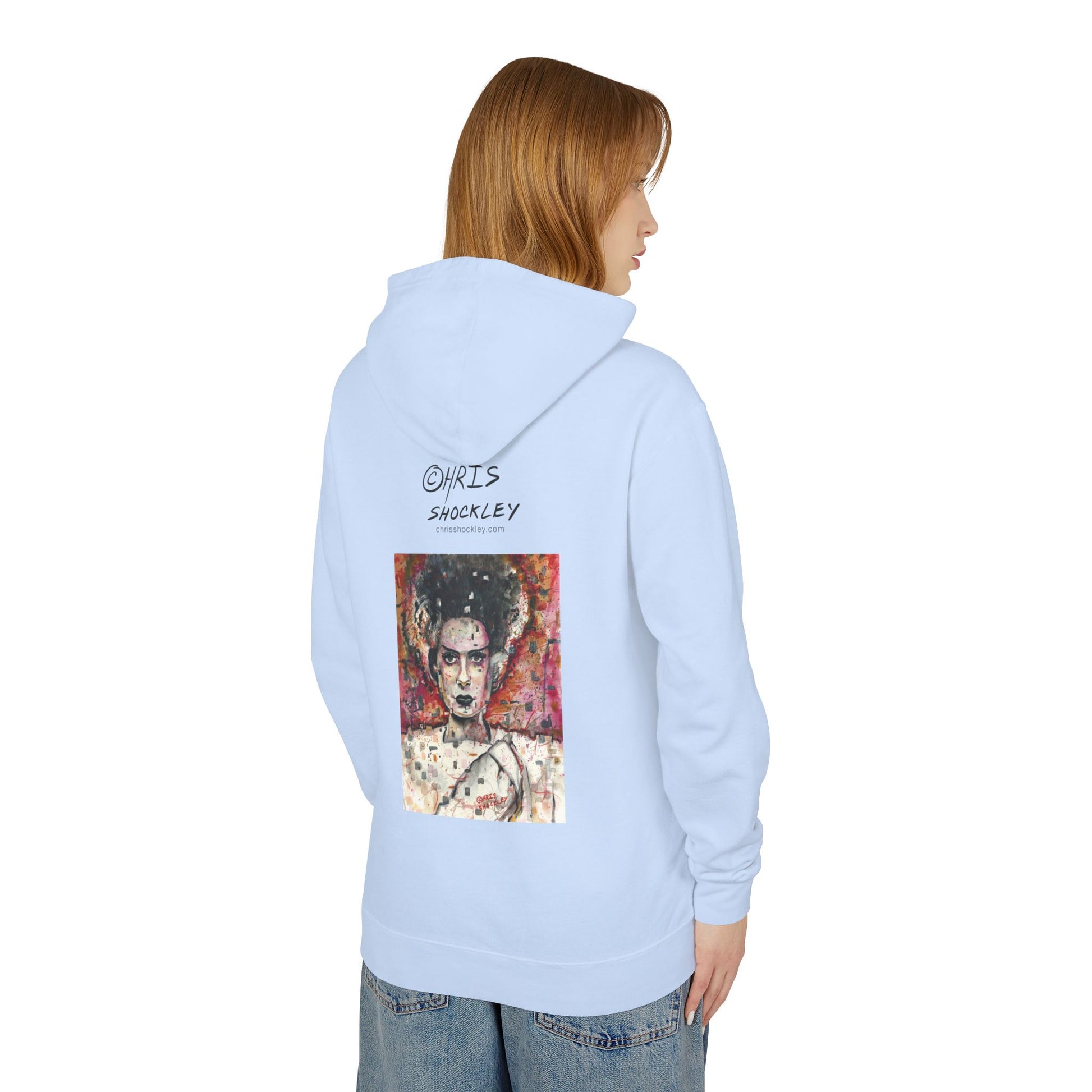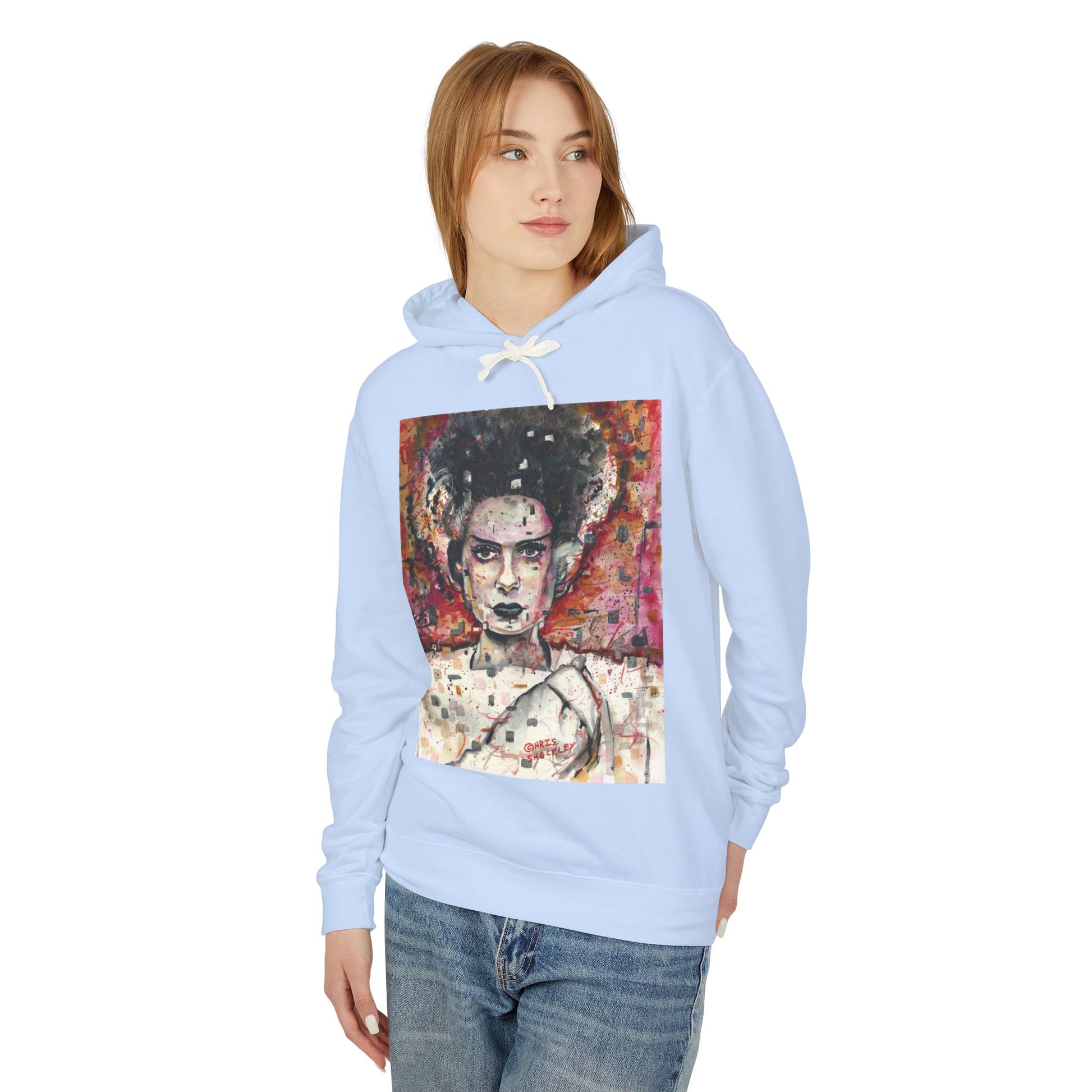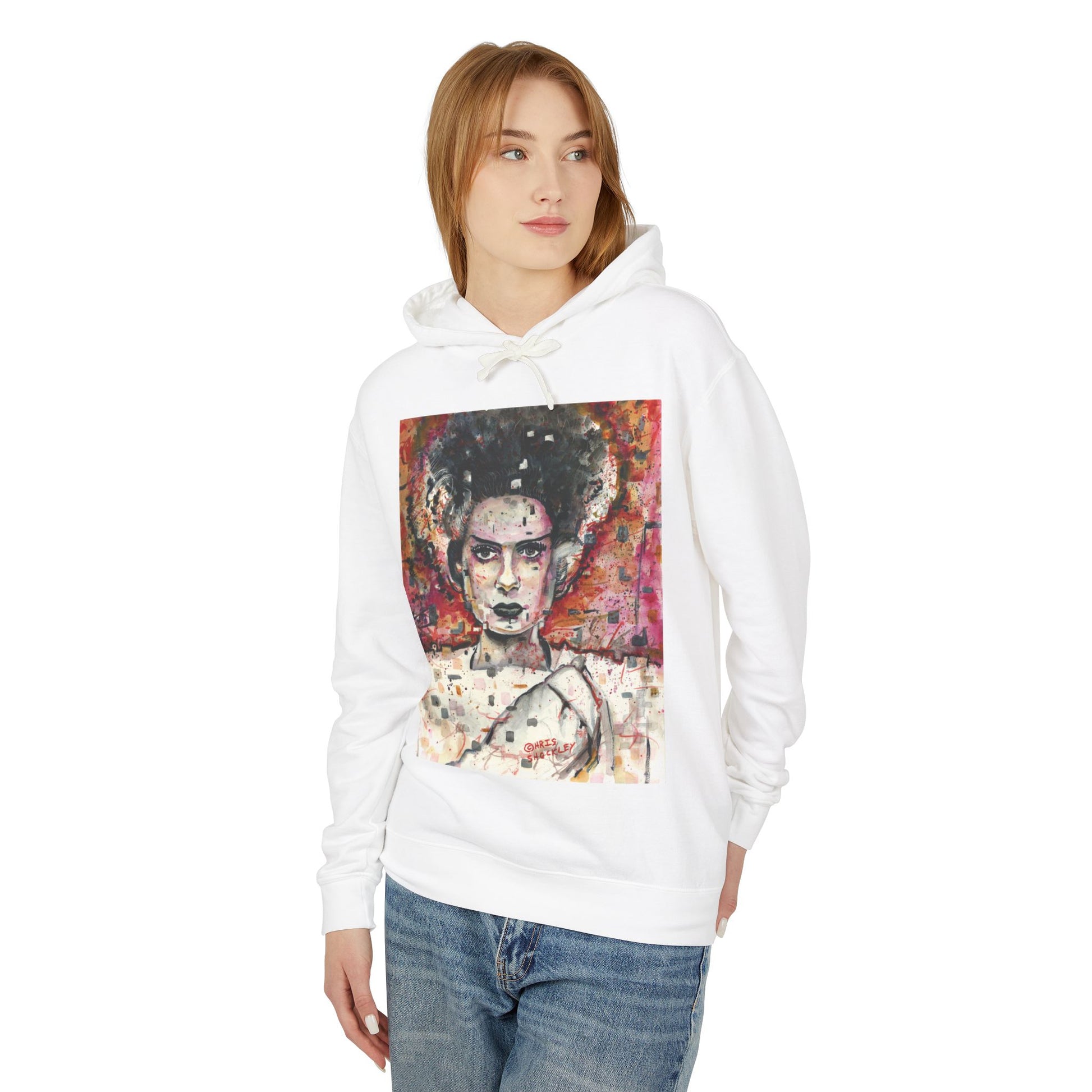 Glitch Bride Lightweight Hooded Sweatshirt - Bride of Frankenstein Design