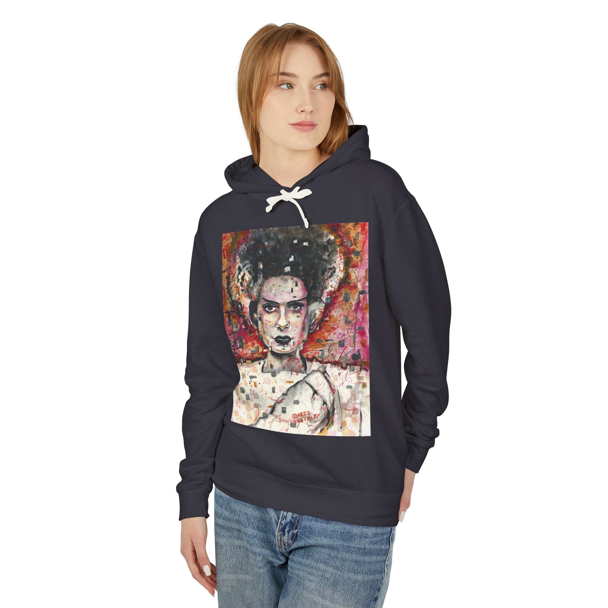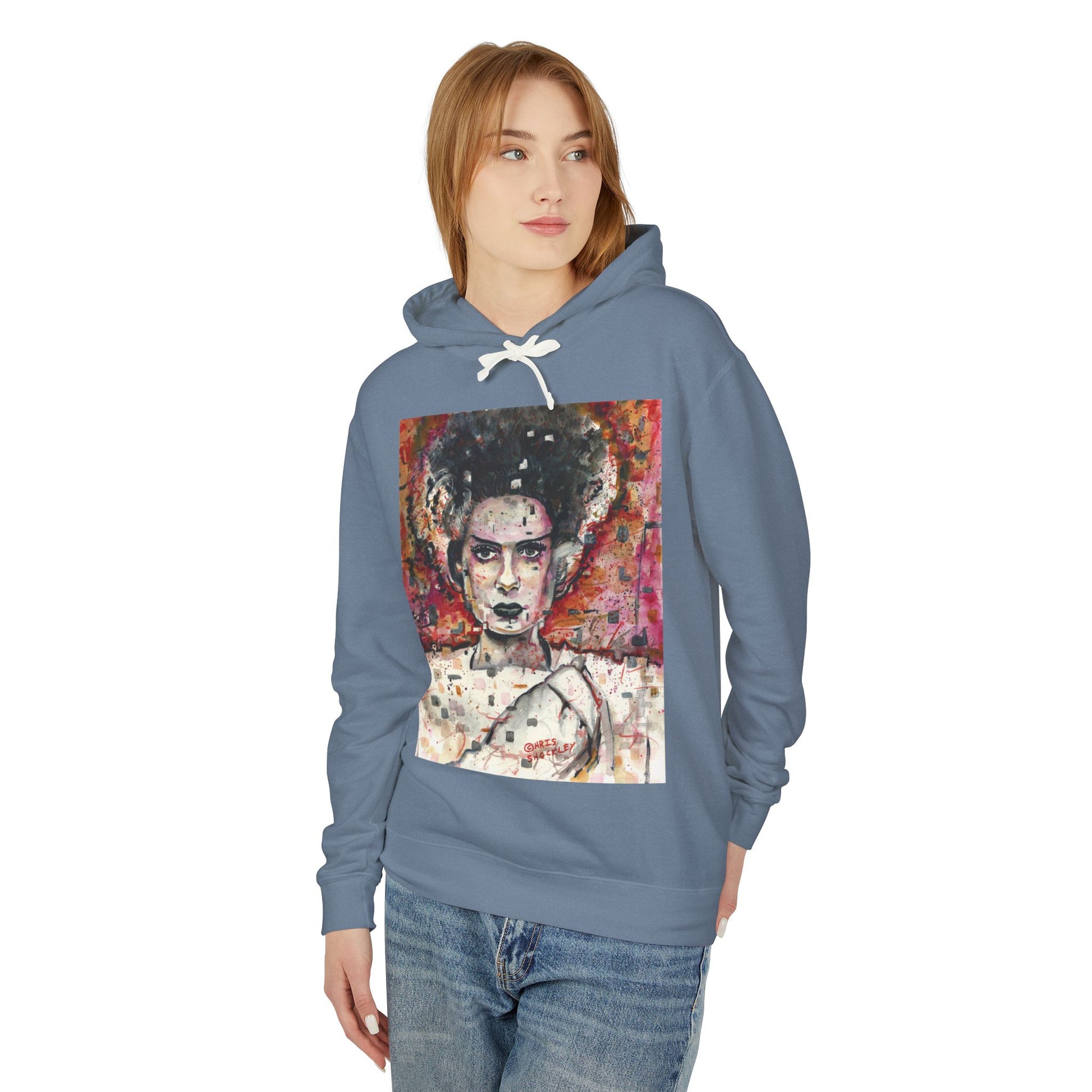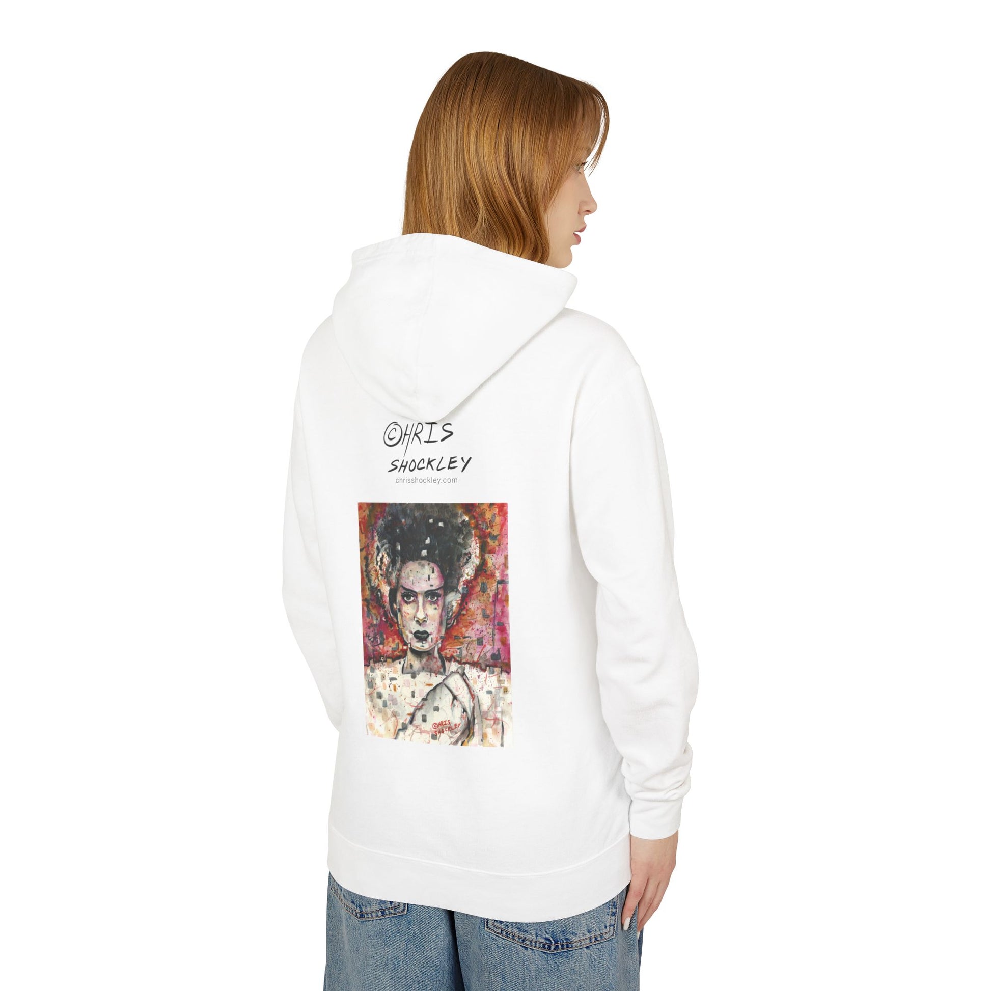 Glitch Bride Lightweight Hooded Sweatshirt - Bride of Frankenstein Design
