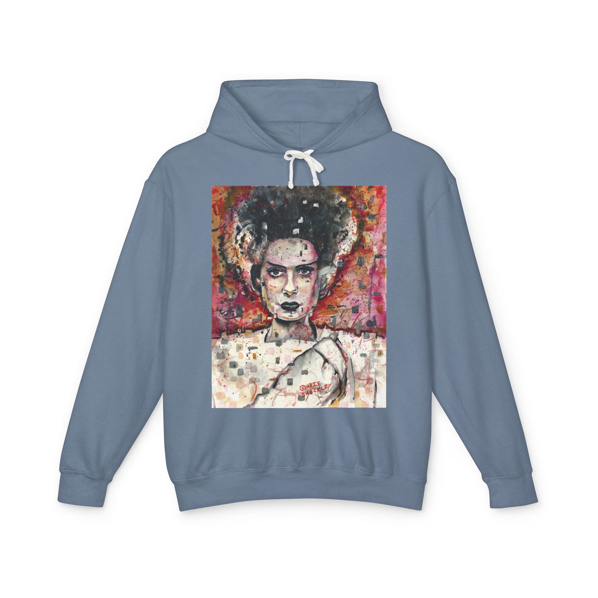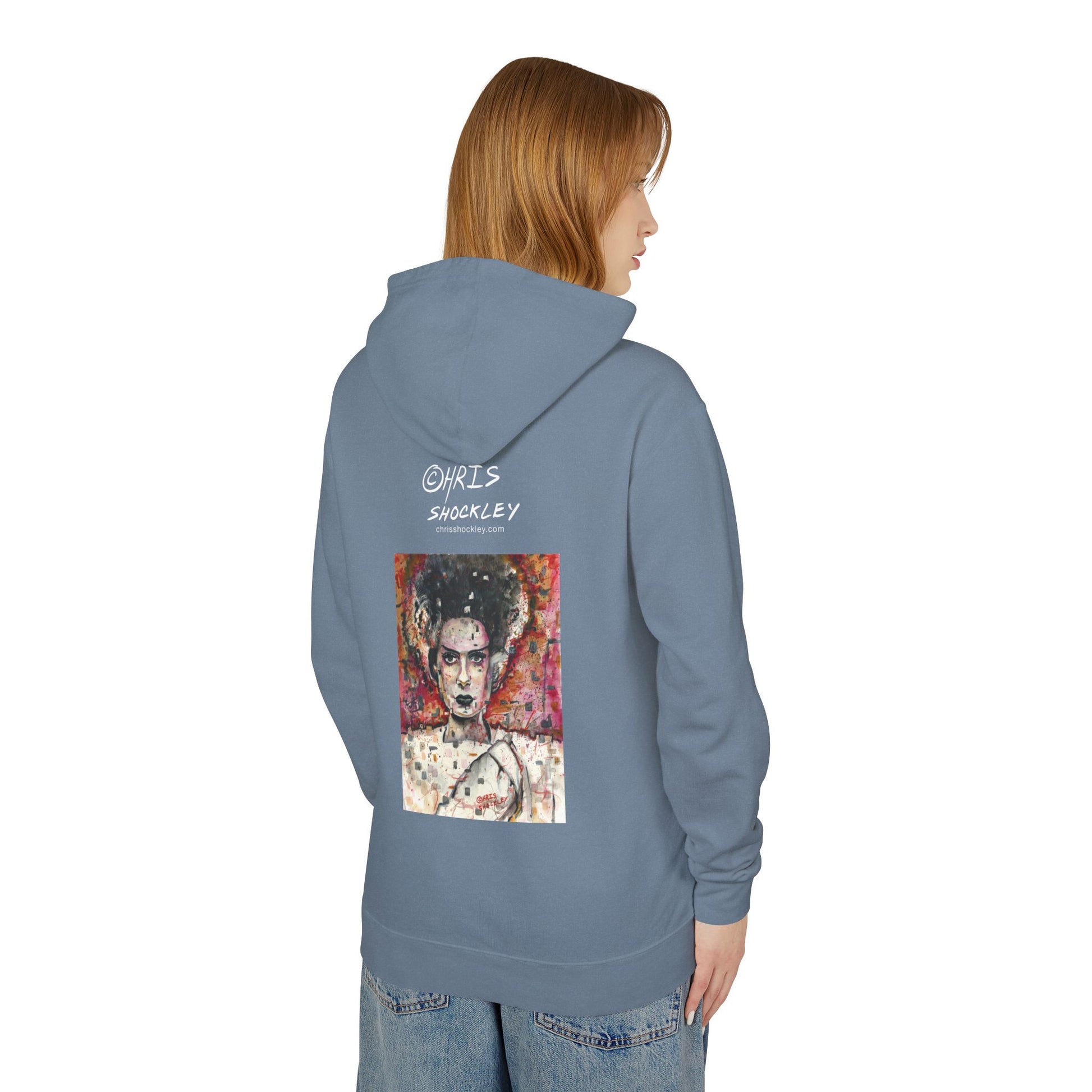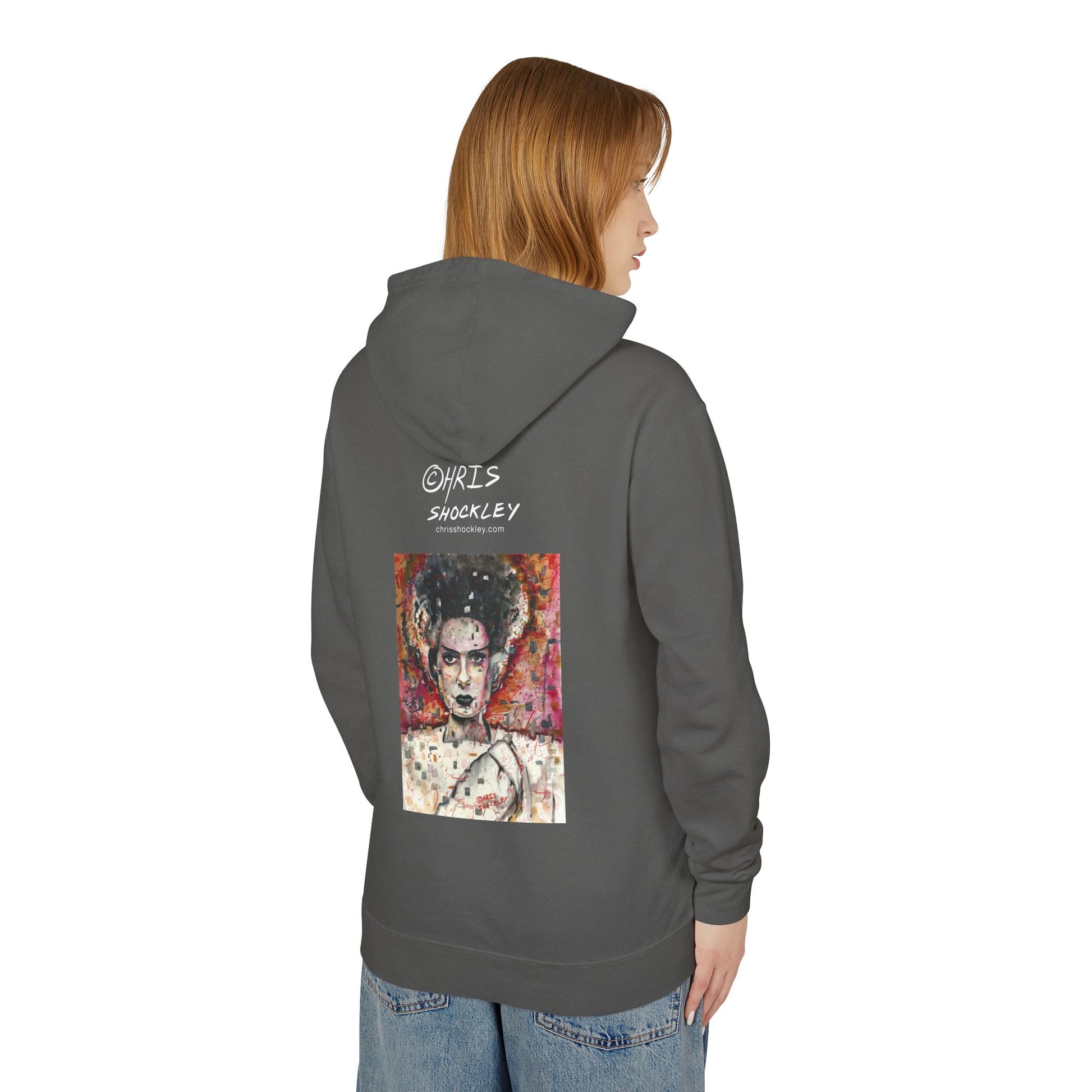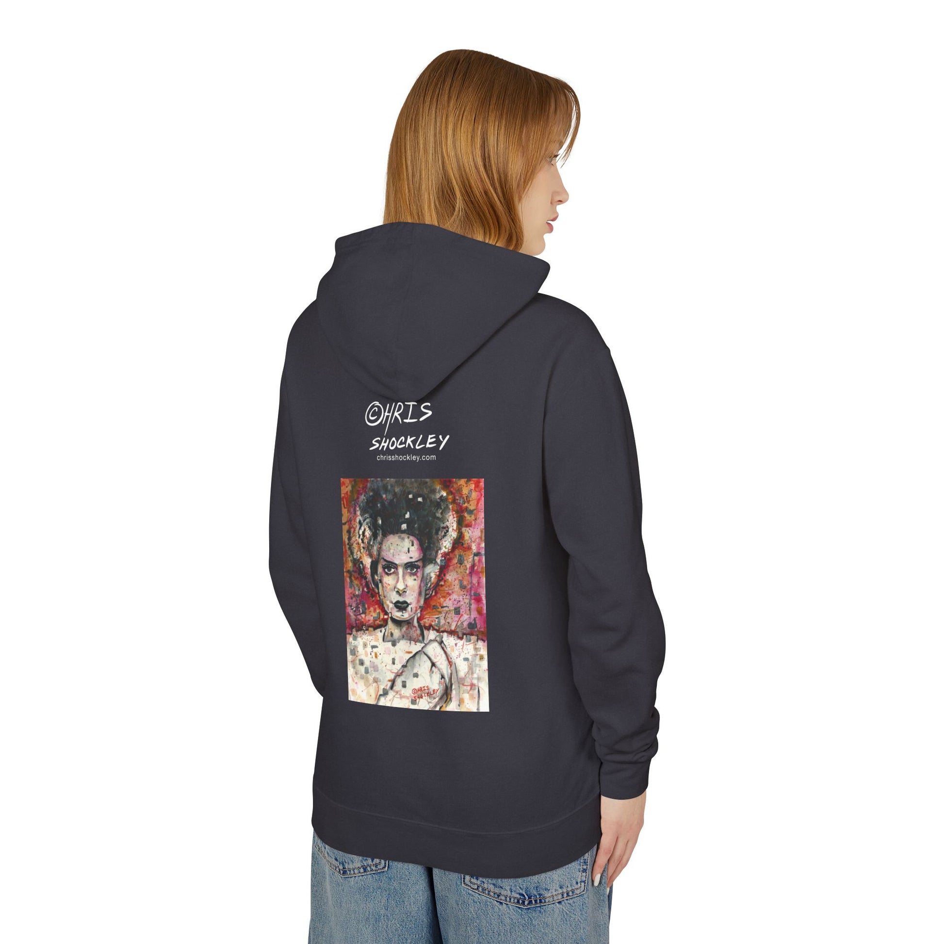 Glitch Bride Lightweight Hooded Sweatshirt - Bride of Frankenstein Design