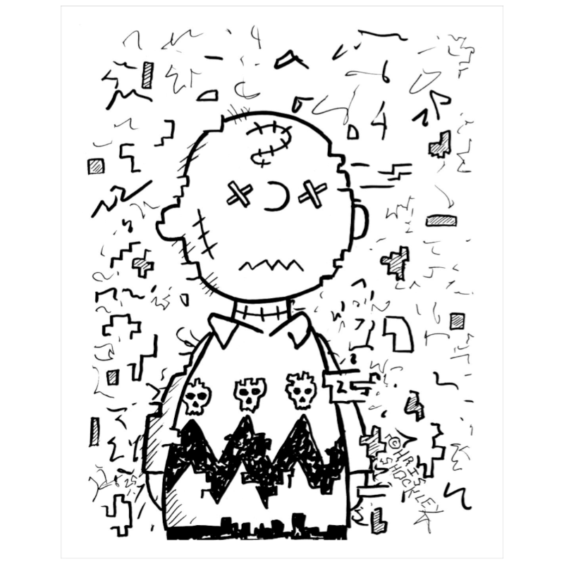 Stitchy Glitchy Brown (black and white) - Archival Matte Giclee Print